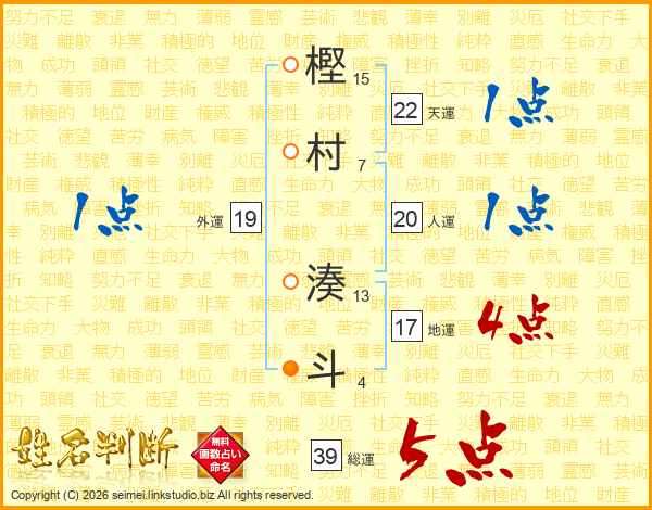 樫村湊斗さんの総運は39画の5点!