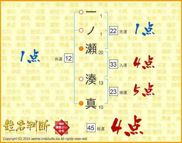 一ノ瀬湊真さんの総運は45画の4点!