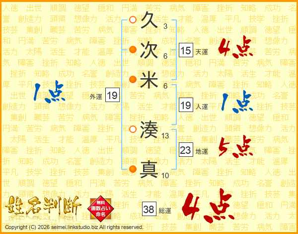 久次米湊真さんの総運は38画の4点!