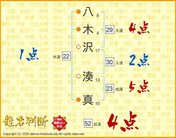 八木沢湊真さんの天運は29画の4点!