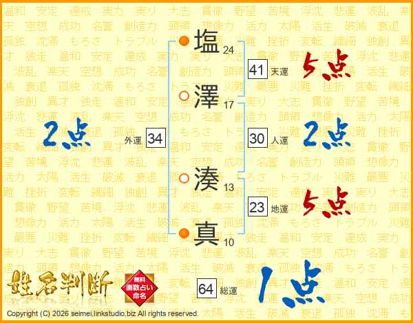 塩(24画)澤(17画) 湊(13画)真(10画)