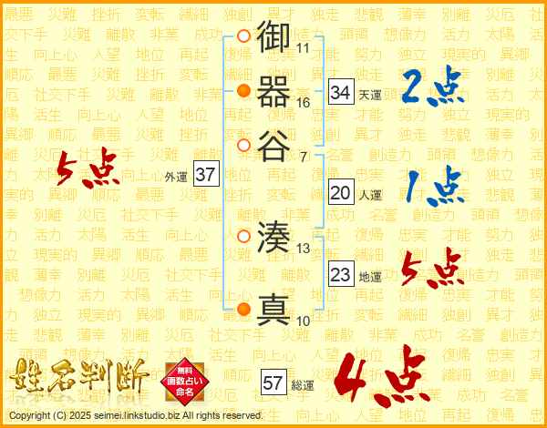 御(11画)器(16画)谷(7画) 湊(13画)真(10画)
