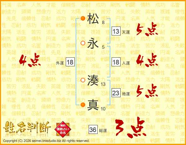 松(8画)永(5画) 湊(13画)真(10画)