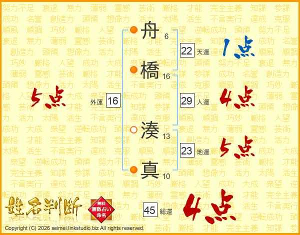 舟(6画)橋(16画) 湊(13画)真(10画)
