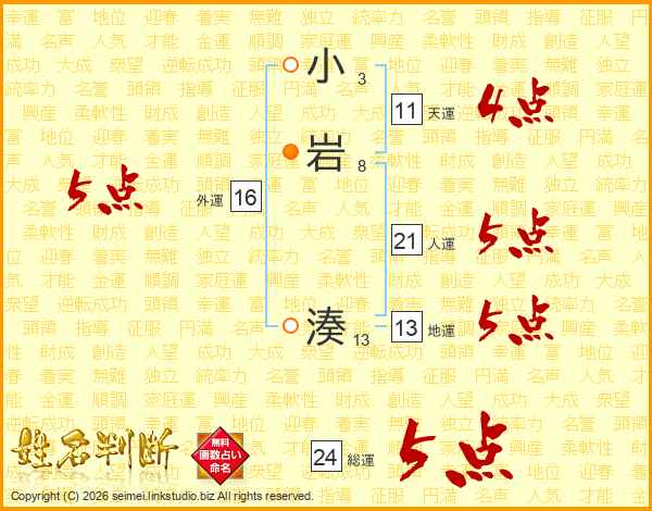小岩湊さんの総運は24画の5点!
