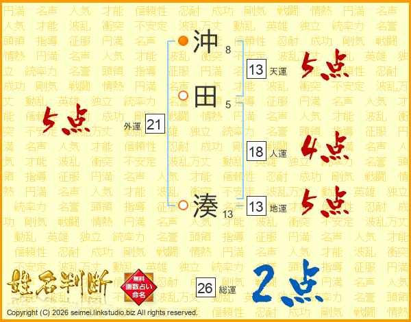 沖田湊さんの総運は26画の2点!
