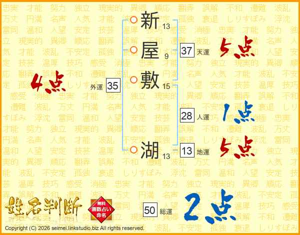 新屋敷湖さんの天運は37画の5点!