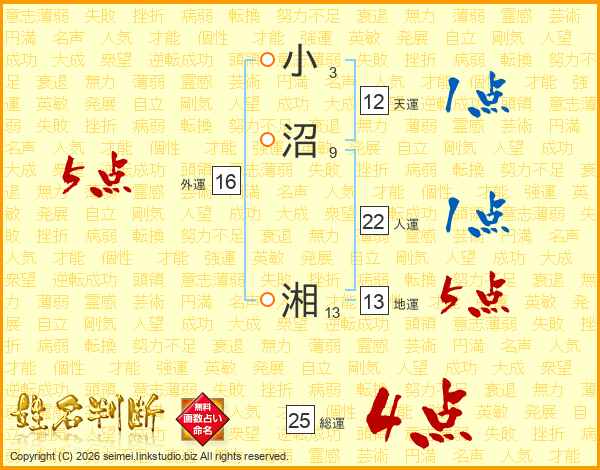 小沼湘さんの総運は25画の4点!