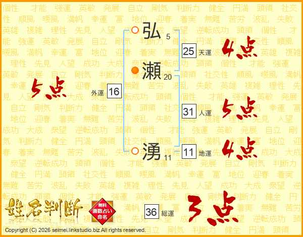 弘瀬湧さんの総運は36画の3点!
