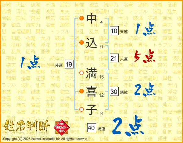 中込満喜子さんの人運は21画の5点!