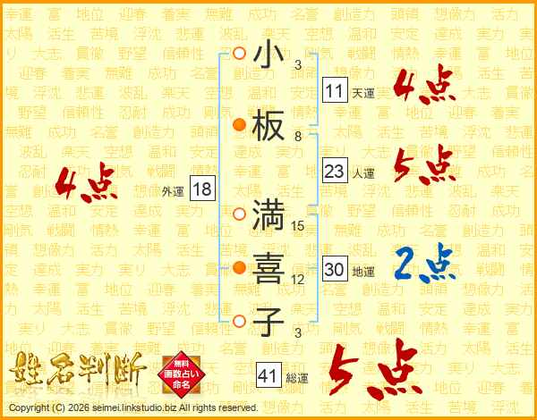 小板満喜子さんの総運は41画の5点!