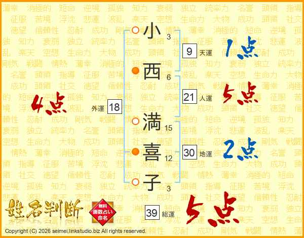 小西満喜子さんの総運は39画の5点!