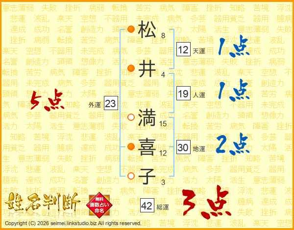 松(8画)井(4画) 満(15画)喜(12画)子(3画)
