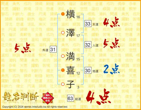 横澤満喜子さんの総運は63画の4点!