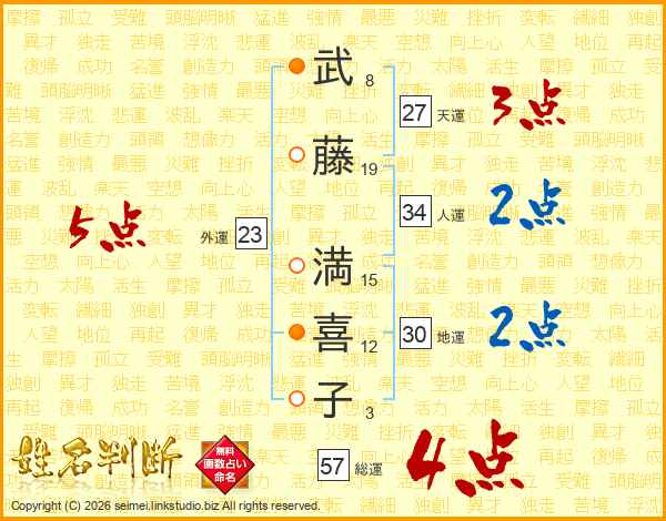 武(8画)藤(19画) 満(15画)喜(12画)子(3画)