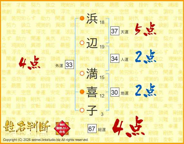 浜辺満喜子さんの総運は67画の4点!