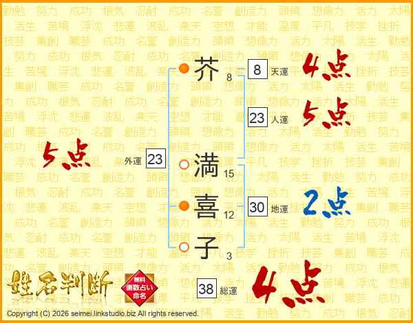 芥満喜子さんの総運は38画の4点!