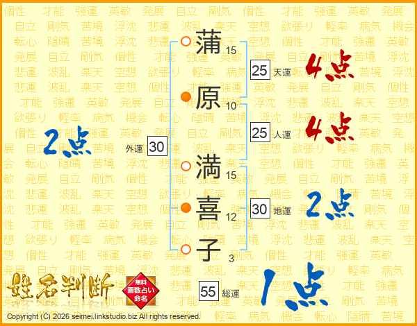 蒲原満喜子さんの人運は25画の4点!