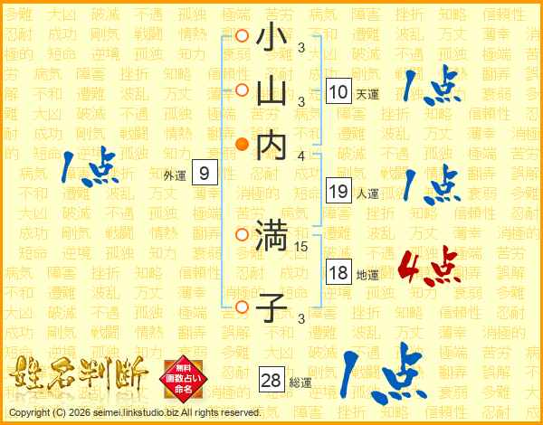 小山内満子さんの総運は28画の1点!
