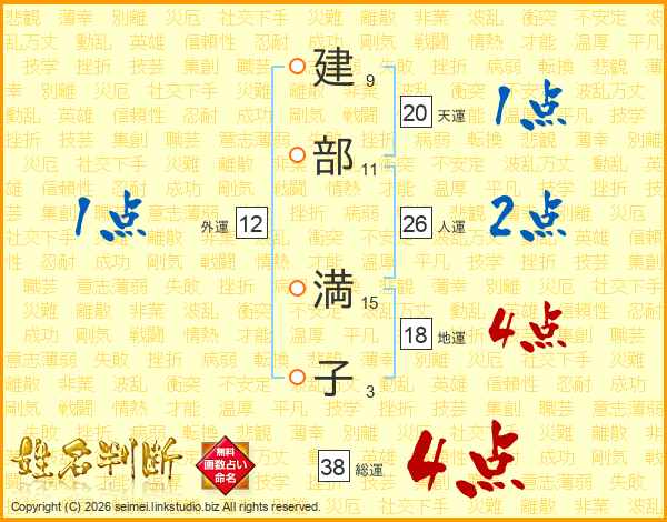 建部満子さんの総運は38画の4点!