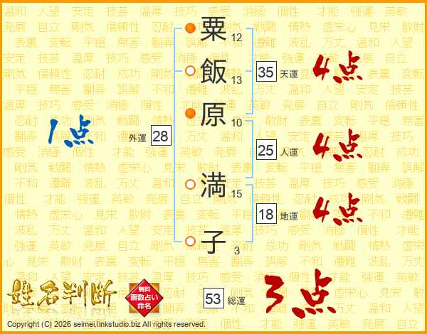 粟(12画)飯(13画)原(10画) 満(15画)子(3画)