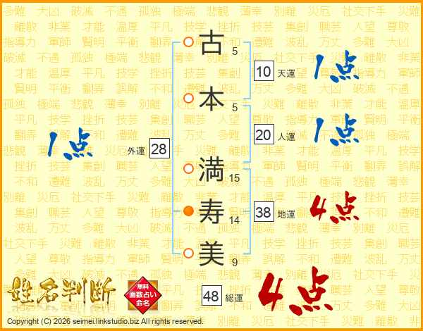 古本満寿美さんの総運は48画の4点!
