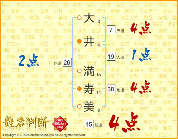 大(3画)井(4画) 満(15画)寿(14画)美(9画)