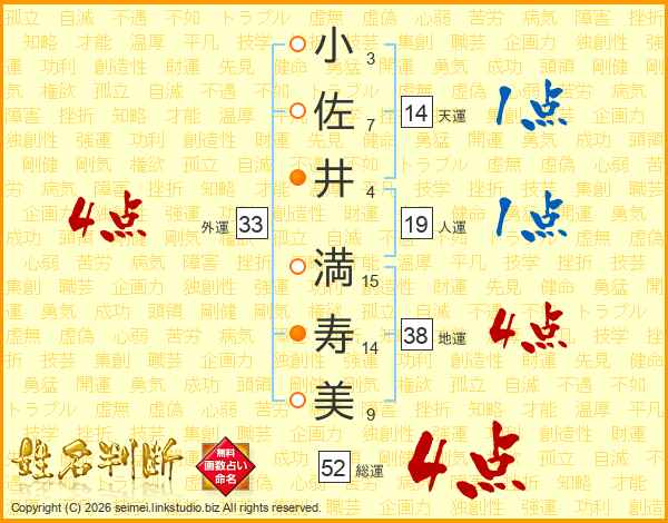 小佐井満寿美さんの総運は52画の4点!