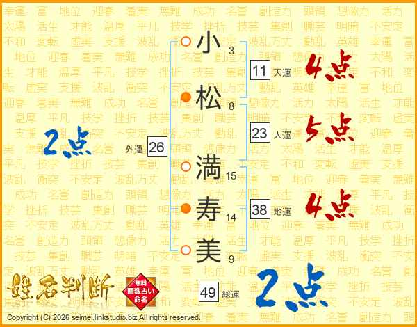 小(3画)松(8画) 満(15画)寿(14画)美(9画)