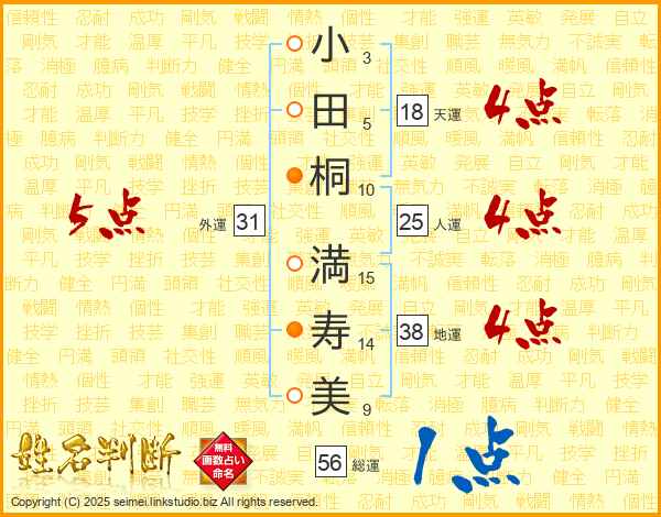 小田桐満寿美さんの人運は25画の4点!