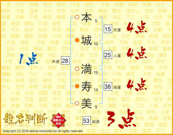 本城満寿美さんの人運は25画の4点!