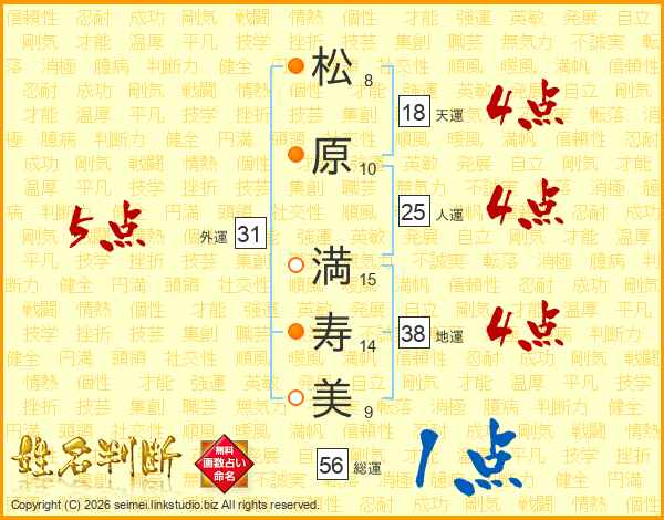 松(8画)原(10画) 満(15画)寿(14画)美(9画)