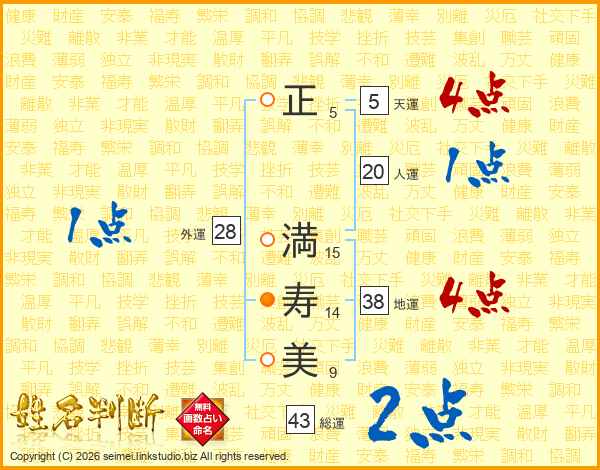 正(5画) 満(15画)寿(14画)美(9画)