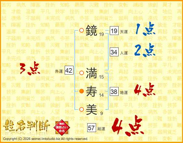 鏡満寿美さんの総運は57画の4点!