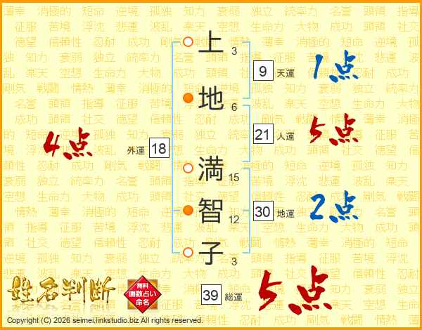 上地満智子さんの総運は39画の5点!