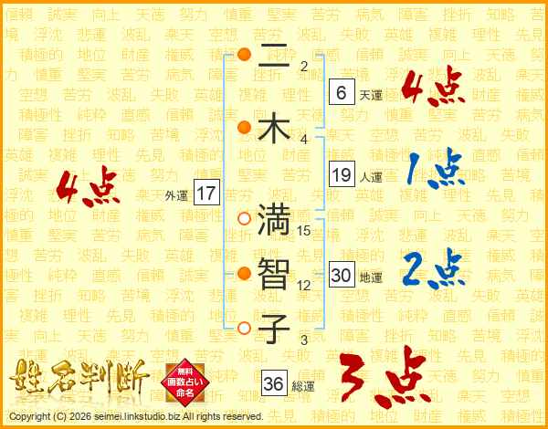 二木満智子さんの外運は17画の4点!