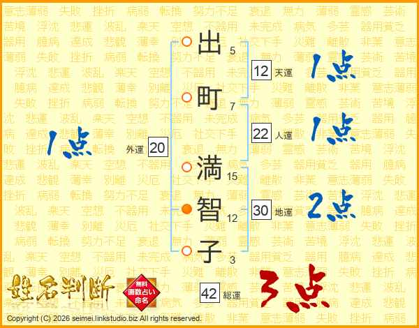 出町満智子さんの総運は42画の3点!