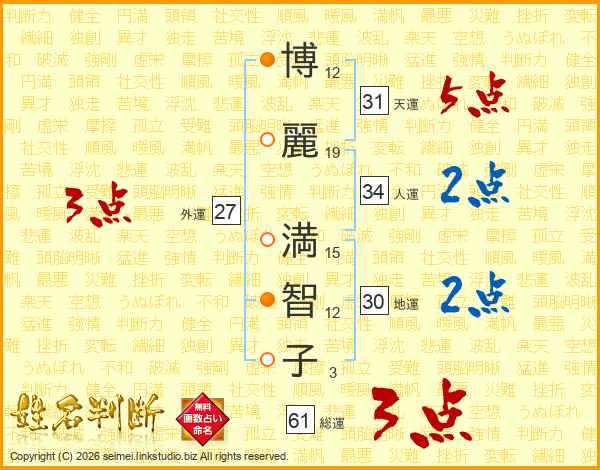 博(12画)麗(19画) 満(15画)智(12画)子(3画)