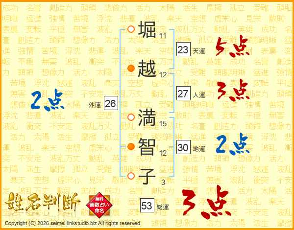 堀越満智子さんの総運は53画の3点!