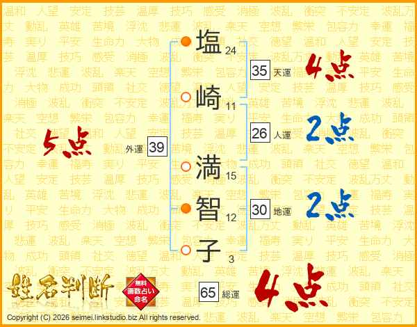塩崎満智子さんの外運は39画の5点!