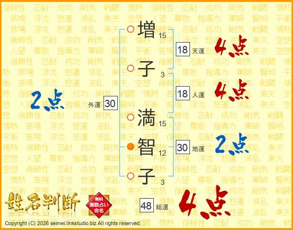 増子満智子さんの総運は48画の4点!