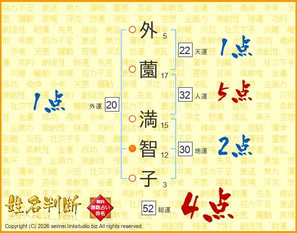 外薗満智子さんの総運は52画の4点!
