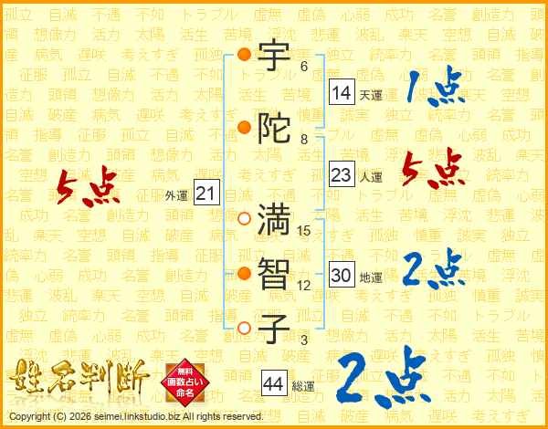 宇陀満智子さんの総運は44画の2点!