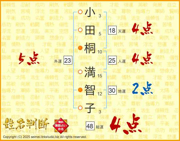 小田桐満智子さんの総運は48画の4点!