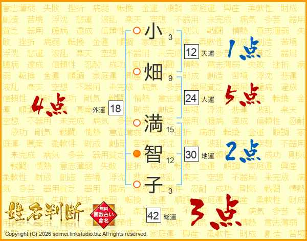小(3画)畑(9画) 満(15画)智(12画)子(3画)