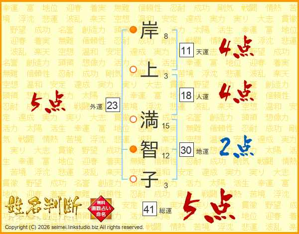 岸上満智子さんの総運は41画の5点!