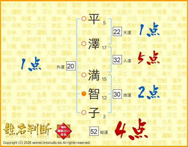 平澤満智子さんの総運は52画の4点!