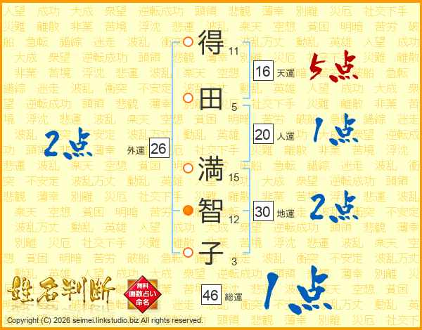 得田満智子さんの総運は46画の1点!