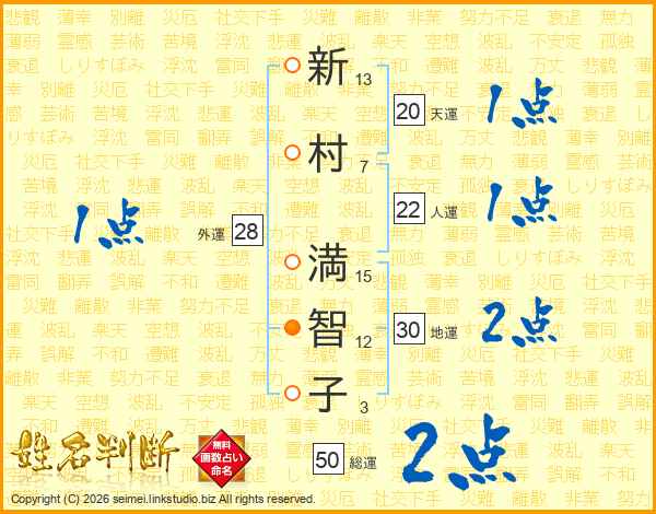 新村満智子さんの地運は30画の2点!