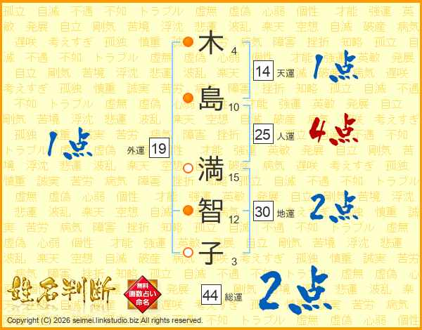 木島満智子さんの総運は44画の2点!